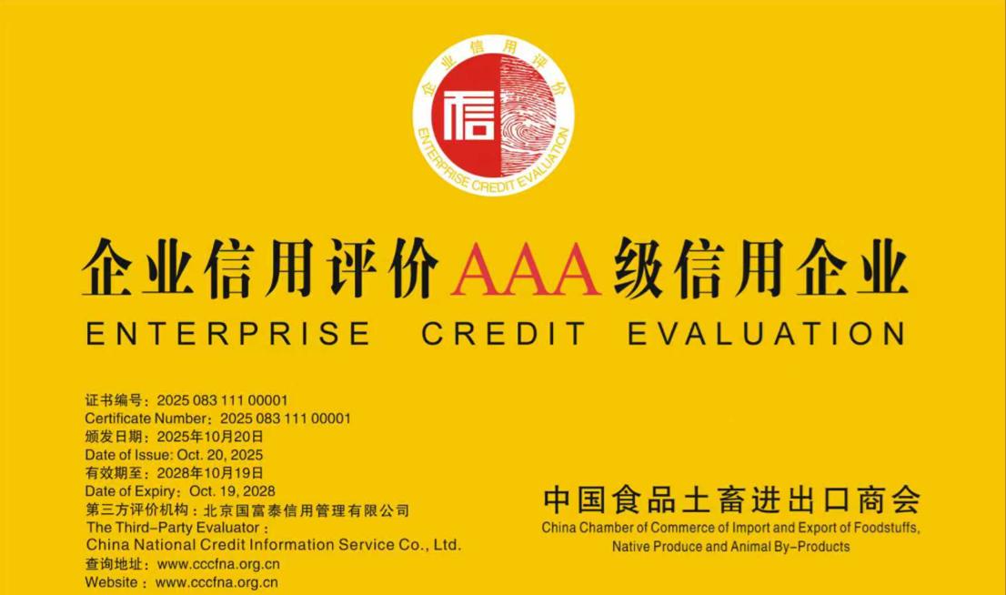 关于公布2025年中国食品土畜进出口商会企业信用等级评价结果的通知