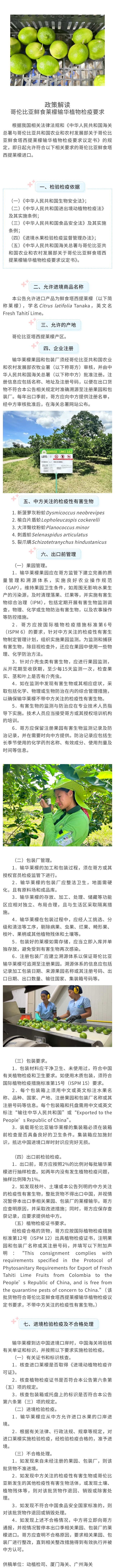 政策解读 | 哥伦比亚鲜食莱檬输华植物检疫要求