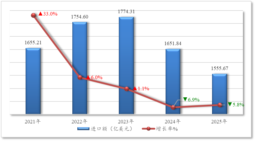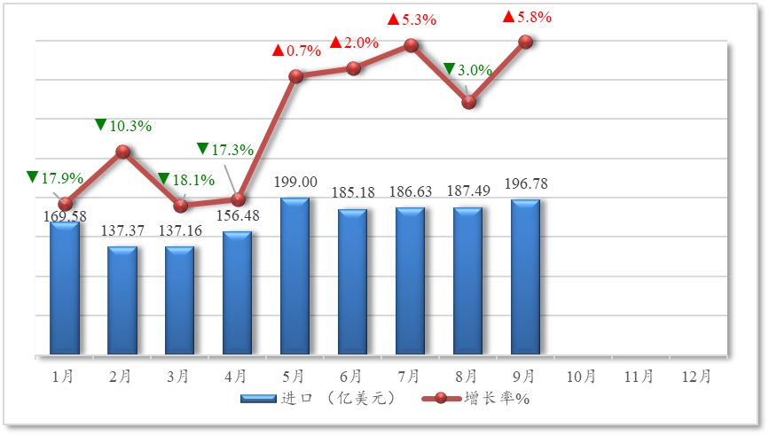 据海关统计,2025年1-9月,我国农产品进口总额1,555.7亿美元,比上年同期下降5.8%,占我国外贸进口总额8.2%。总体来看,今年前三季度农产品进口走势整体偏弱,1-4月进口额持续下降,降幅均在10%以上;5-7月虽连续小幅增长,但未能形成稳定趋势,8月再度转负;直至9月进口额同比增长5.8%,增速较前几个月明显加快,呈现企稳回升态势。