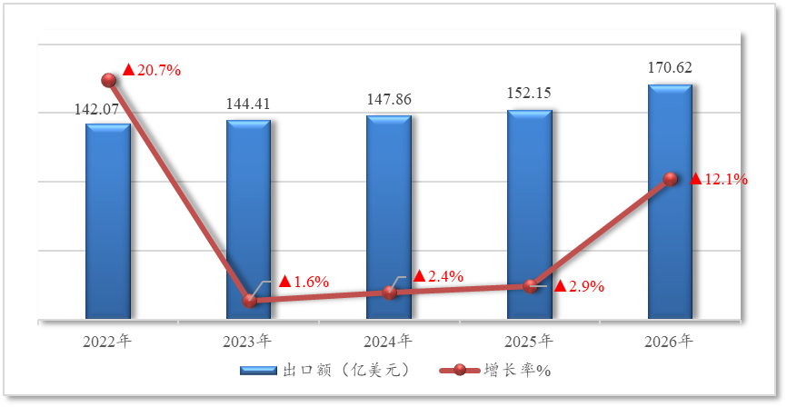 据海关统计,2026年1-2月,我国农产品累计出口额170.6亿美元,比上年同期增长12.1%,增速显著高于前三年同期水平。