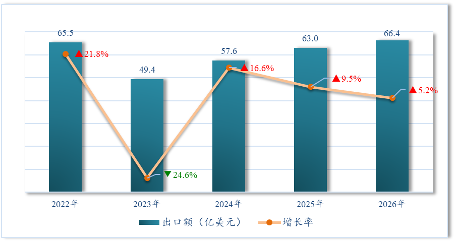 据INDEC统计,2026年前2个月,阿根廷农产品出口额66.4亿美元,比上年同期增长5.2%,,创下近五年同期最高水平。整体来看,阿根廷农产品出口额呈现先降后升的走势。2022年1-2月出口额65.5亿美元,2023年同期下降至49.4亿美元,降幅达24.6%,为近五年最低点。此后两年逐步回升,2024年和2025年同期分别达到57.6亿美元和63亿美元,同比分别增长16.6%和9.5%。2026年1-2月出口额进一步上升,创下近五年同期最高水平。
