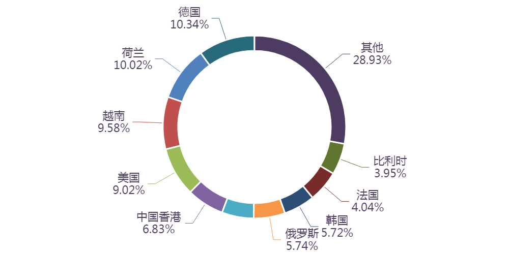 市场方面,前10个月,我国咖啡及制品出口额排名前十的国家/地区分别为德国、荷兰、越南、美国、中国香港、马来西亚、俄罗斯、韩国、法国、比利时,合计占我国该产品出口额的71.07%。