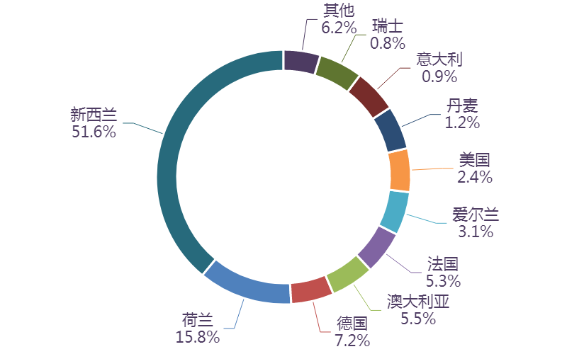 市场方面,前9个月,我国乳制品进口额排名前十的国家/地区分别为新西兰、荷兰、德国、澳大利亚、法国、爱尔兰、美国、丹麦、意大利、瑞士,合计占我国该产品进口额的93.8%。