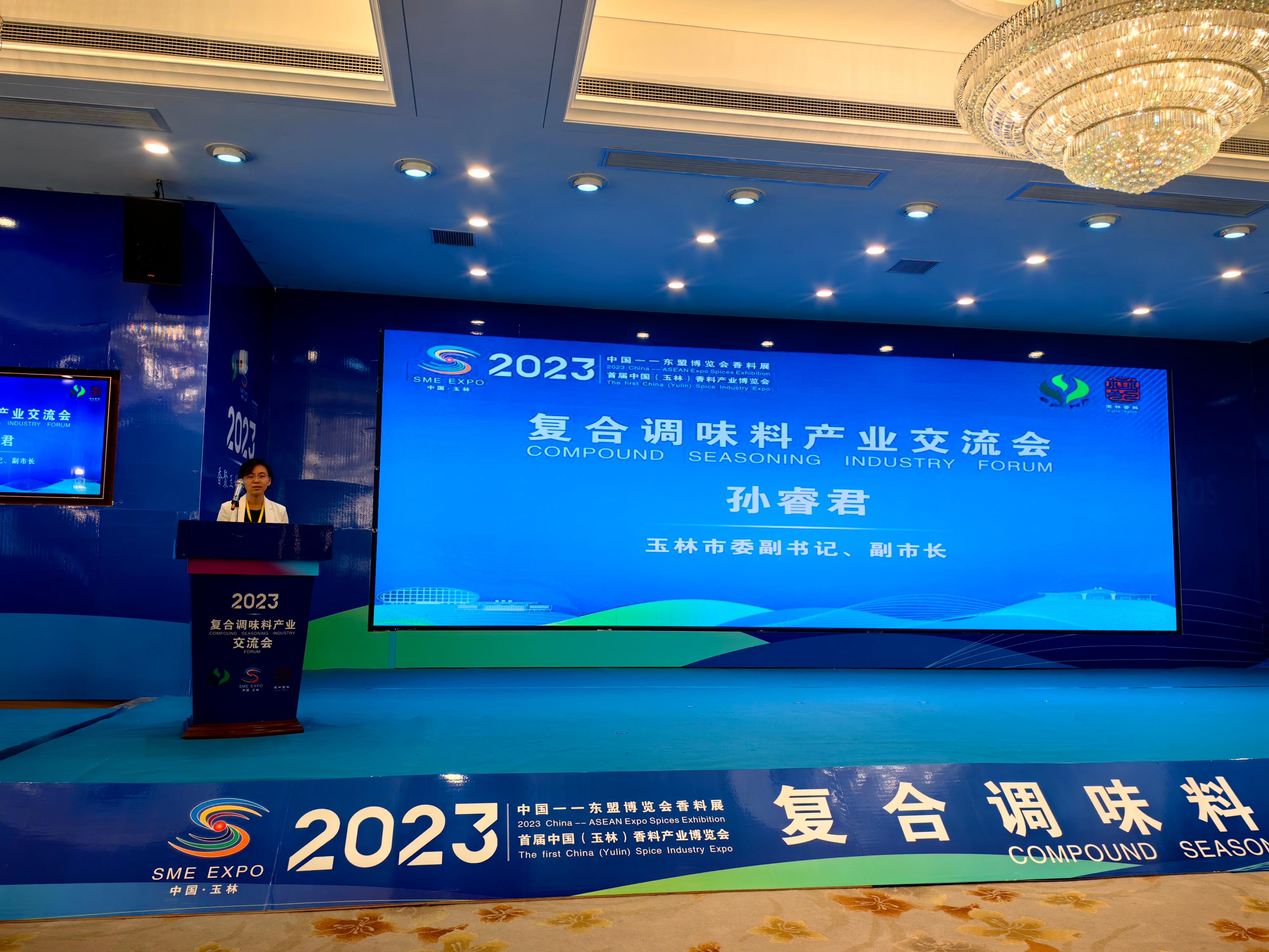 9月20日上午,香博会同期活动--复合调味料产业交流会在玉林召开,徐小虎副会长出席并致辞,玉林市委副书记、副市长孙睿君致辞,玉林政协副主席、工商联主席曾峰主持会议。交流会邀请了百佳食品(山东)有限公司总经理蔡杨杨、上海味好美食品有限公司中国区采购总监何韶辉做了主旨演讲。在“玉林复合调味料产业如何升级发展”为主题的访谈会上,商会调料分会秘书长李漪担任主持人,邀请了六家业内精英企业的负责人分享企业发展战略和经营理念,从溯源、质量、安全、科研、标准、营销、新赛道等多方面多角度交流探讨复合调味料产业发展,并为玉林调料产业升级和产业融合把脉建言。最后,大会宣介了玉林香料产业园的招商政策。本次交流会有近200名代表参加。