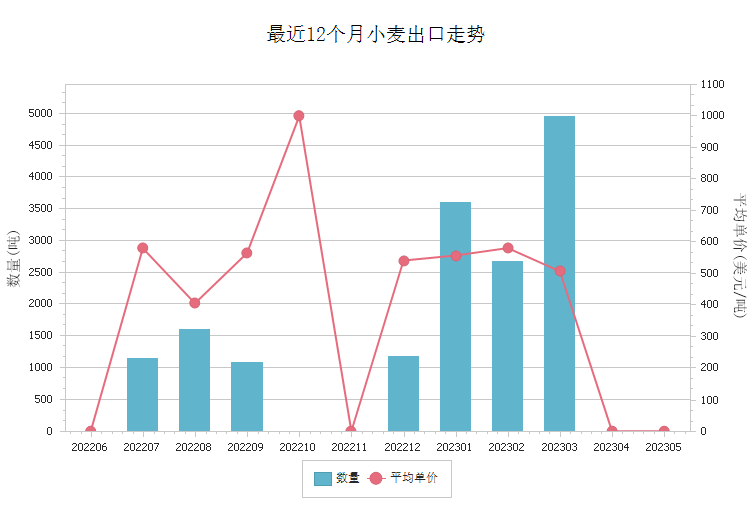 商品出口走势图 - 小麦(2022.6 - 2023.5)