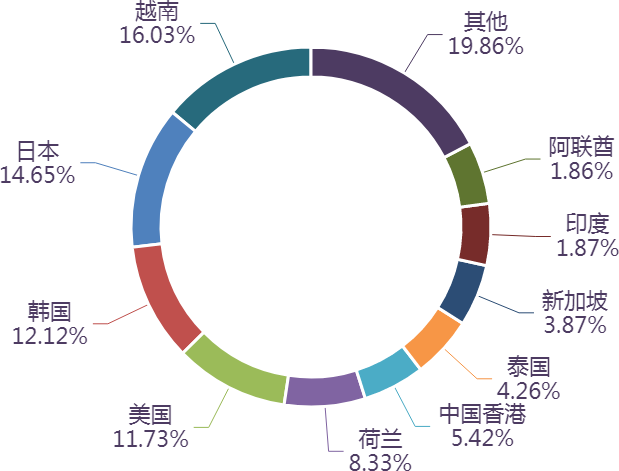 市场方面,前4个月,我国花卉植物出口额排名前十的国家/地区分别为越南、日本、韩国、美国、荷兰、中国香港、泰国、新加坡、印度、阿联酋,合计占我国该产品出口额的 80.14%。