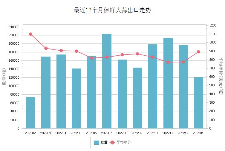 商品出口走势图 - 保鲜大蒜(2022.2 - 2023.1)