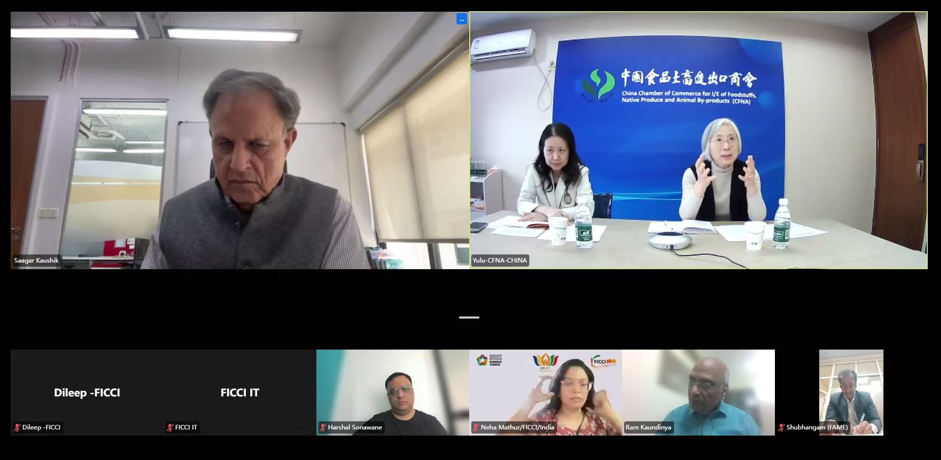 2026年3月6日,于露副会长作为金砖国家工商理事会中方农业经济组副主席,同农业经济组组长单位中粮集团对外合作部代表张宏副总经理,受邀与印度农业经济组主席就农业可持续等议题进行线上工作交流。
