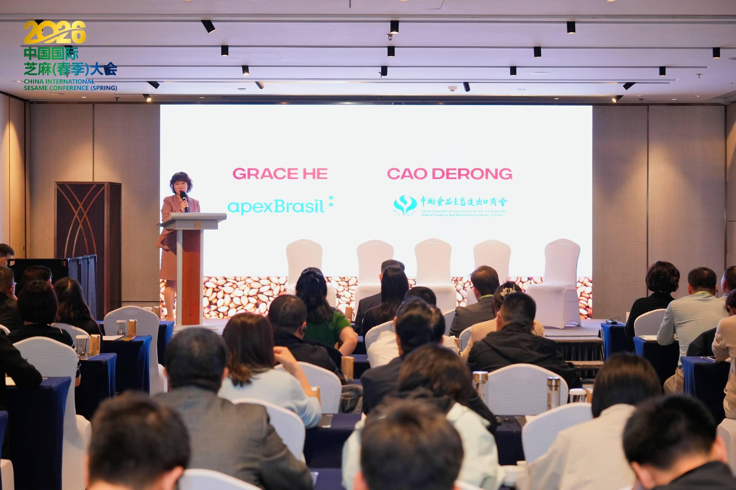 自2025年12月巴西芝麻正式准入中国市场后,迅速获得市场认可,仅用半年时间便实现规模化对华出口,一跃成为我国第三大芝麻进口来源国。4月23日下午,在巴西投资促进局支持下,商会与巴西豆类及特殊谷物协会共同召开中国—巴西芝麻产业研讨会。来自中国和巴西的10位专家、企业家,围绕“打造中巴芝麻贸易通道”和“巴西芝麻产业规模、品质与发展潜力”两个主题进行了研讨。