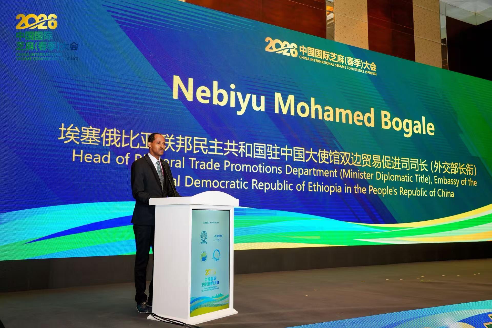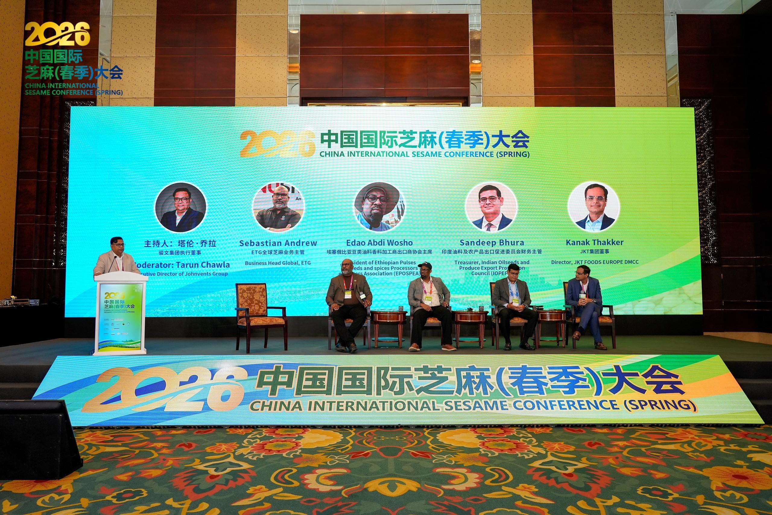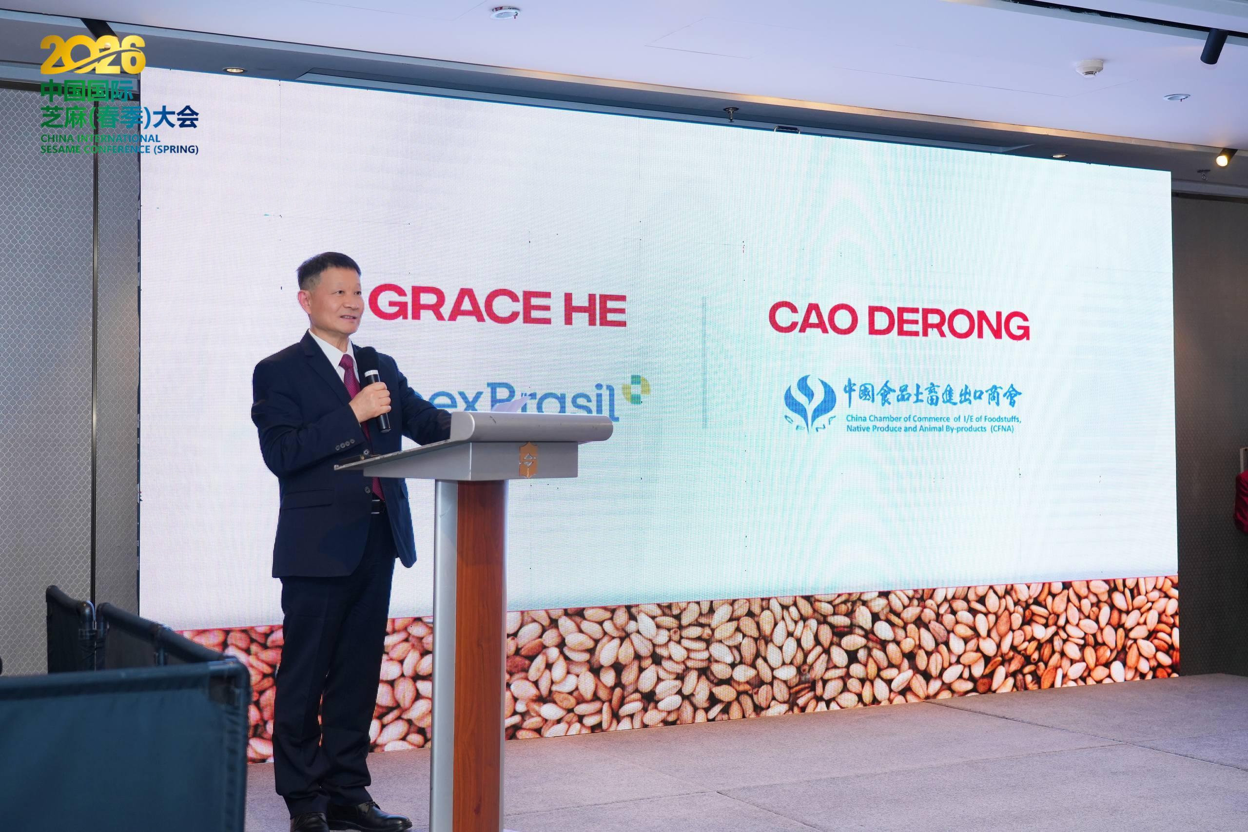 4月23-24日,由中国食品土畜进出口商会主办的2026年中国国际芝麻(春季)大会在青岛市召开。曹德荣会长及埃塞俄比亚驻华大使馆双边贸易促进司Nebiyu司长等出席活动并致辞,商务部驻青岛特派员办事处邱群飞一级调研员、青岛市商务局贸易发展中心刘婷主任到会指导,来自全球19个国家和地区的700余名产业代表齐聚现场,共话行业发展。