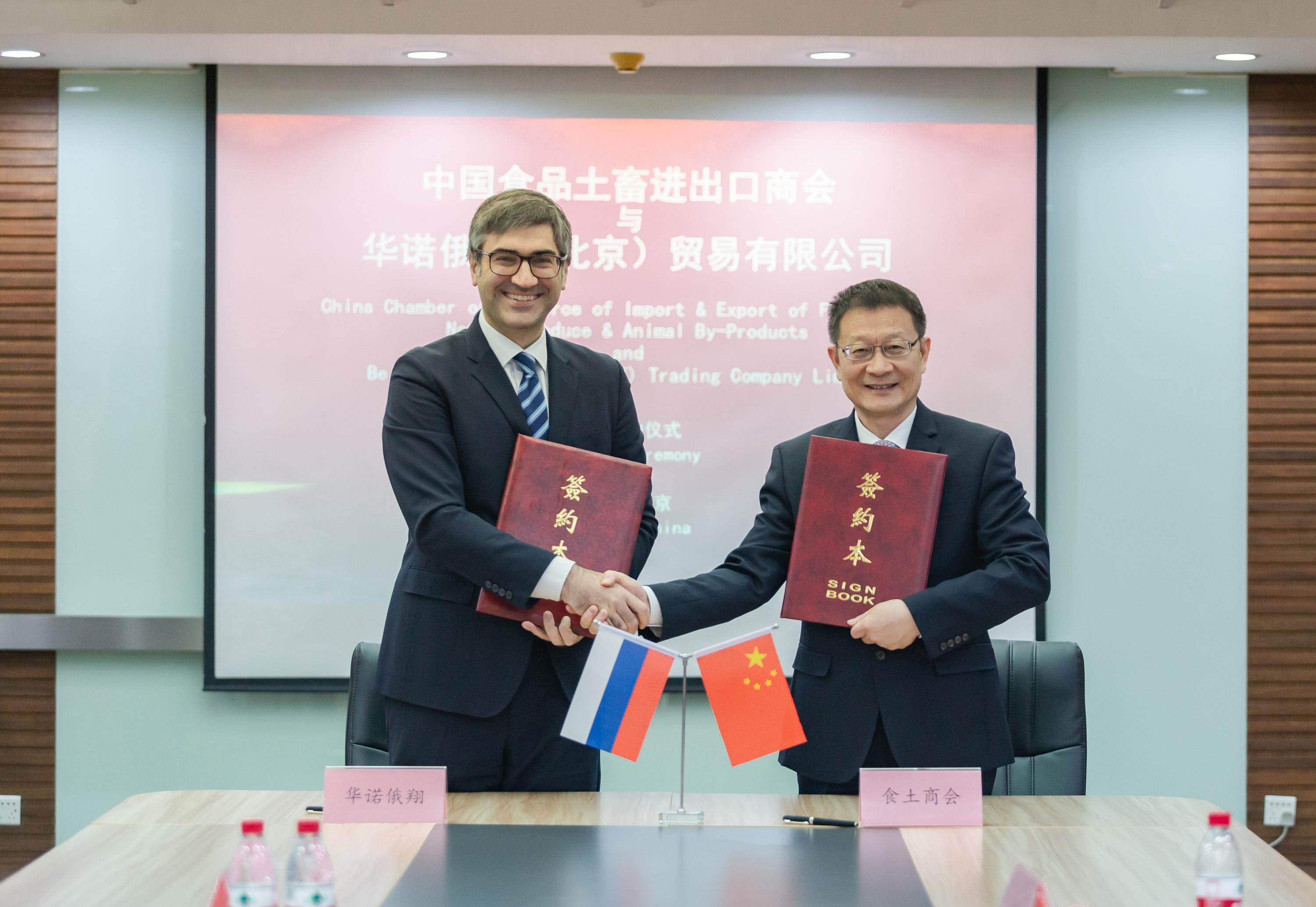 中国食品土畜进出口商会与俄罗斯华诺俄翔(北京)贸易有限公司签署战略合作协议