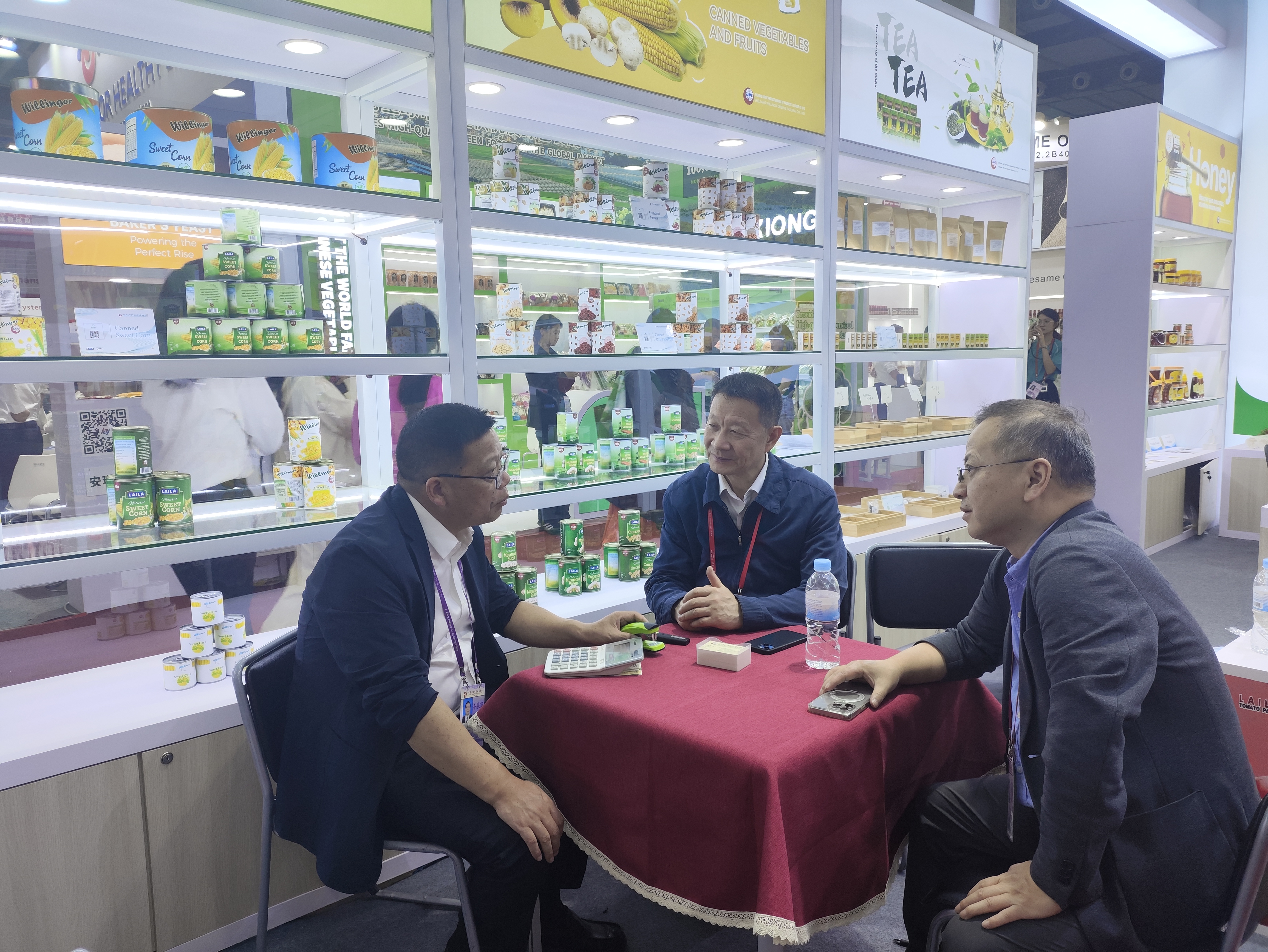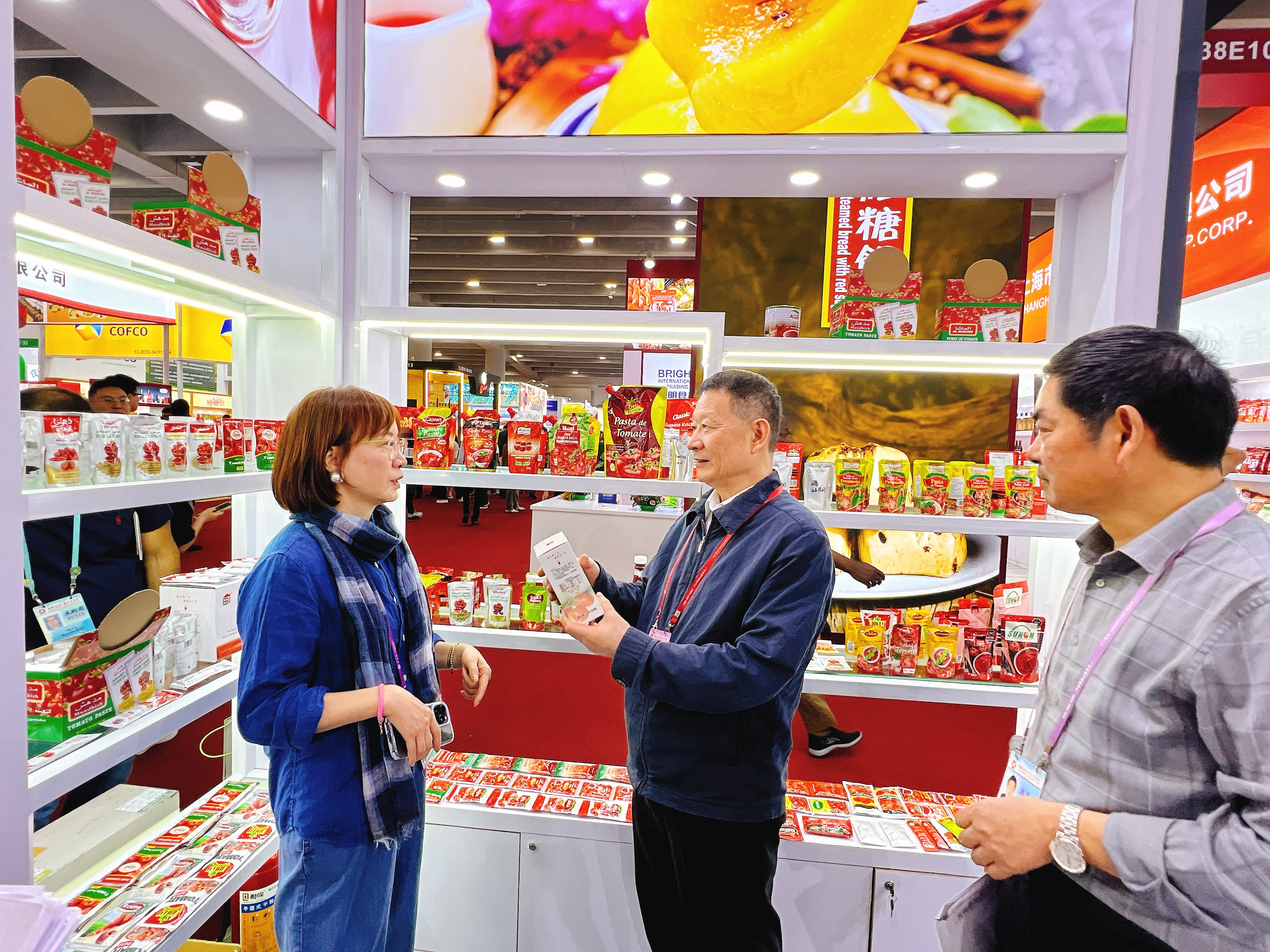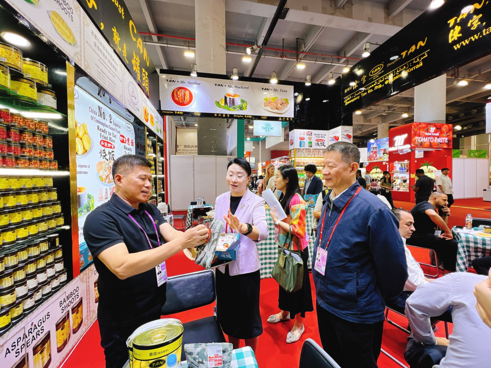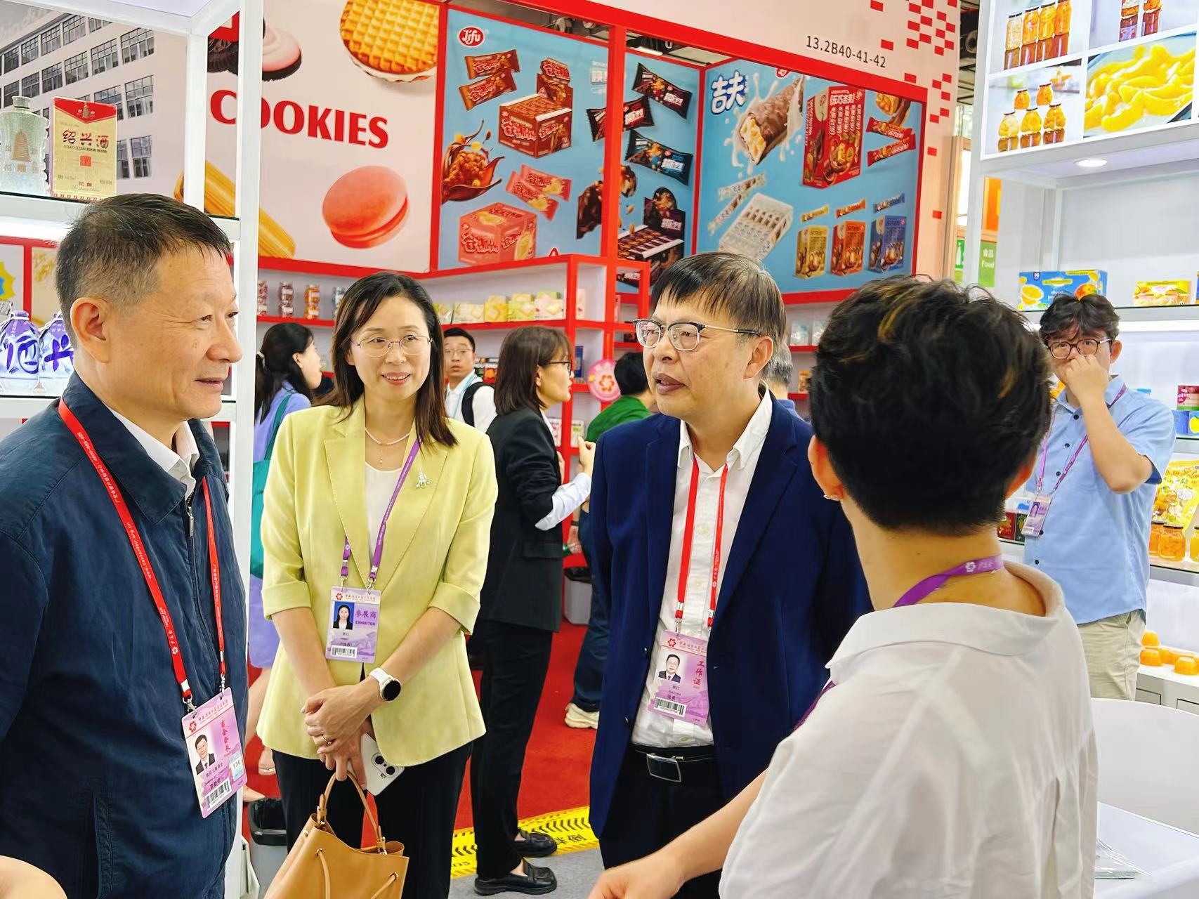 根据商务部外贸司的要求,我会对参加广交会的食品农产品企业进行了调研。曹德荣会长带队,先后走访中粮集团、江苏粮油、天津食品、浙江粮油、浙江土畜、安徽粮油、漳州陈字、北大荒、青岛天祥、上海大山合、安徽强旺、广东佛山海天、河北特美特、山东万兴等企业展位,详细询问了解企业出口拓市场、抓订单情况,听取企业在经营发展过程中遇到的困难和问题,鼓励企业充分利用广交会平台和国家出口鼓励政策,不断提高产品竞争力,推动中国食品农产品贸易高质量发展。商务部外贸司邢颖娜副司长、中国对外贸易中心苏斌副主任等也到食品土畜馆进行了调研。