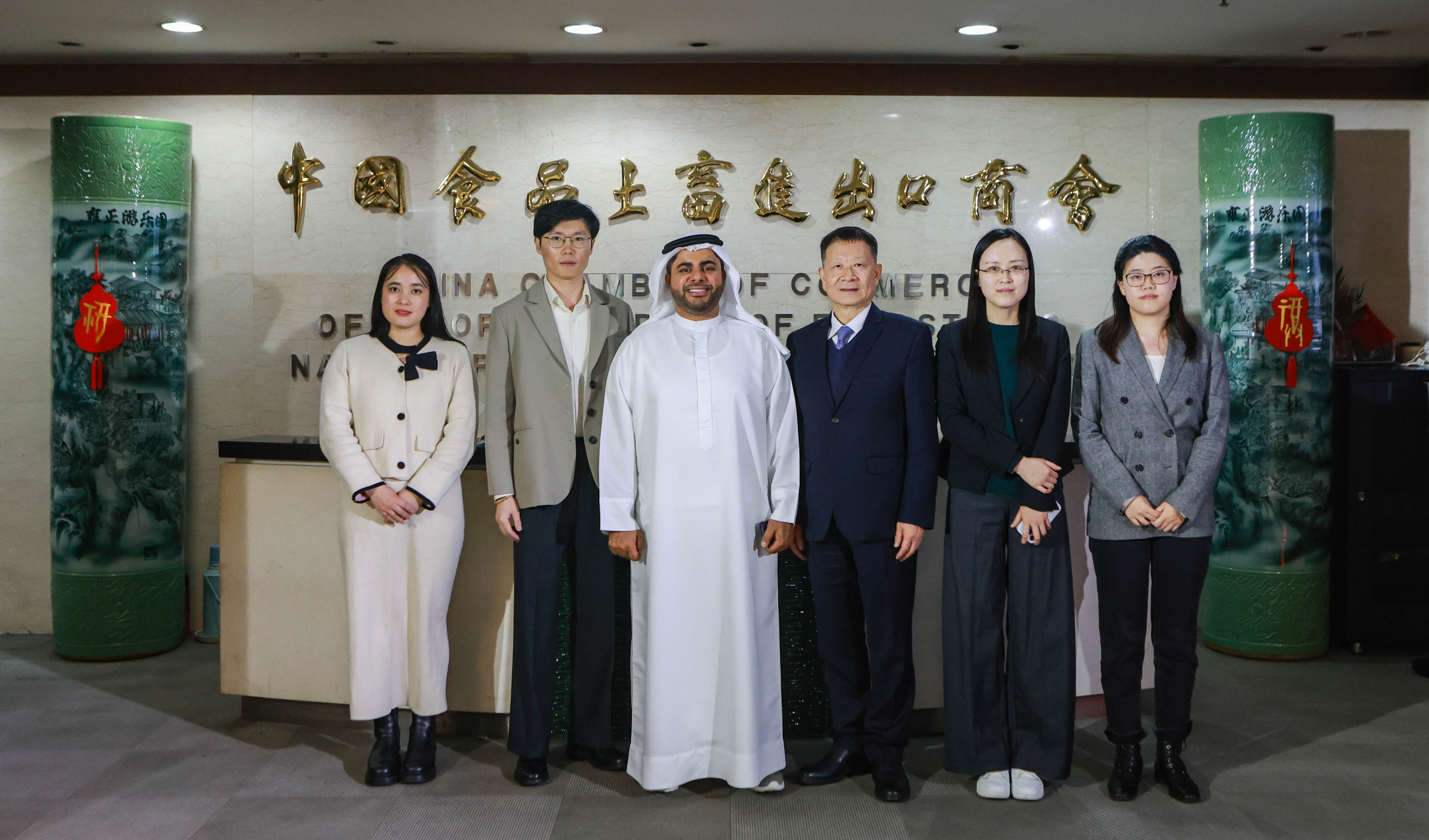 10月29日,曹德荣会长会见了阿拉伯联合酋长国驻华大使馆商务参赞阿卜杜拉·奥巴沙·努艾明。阿卜杜拉参赞表示,欢迎中方企业赴阿联酋投资食品农产品加工产业,扩大对阿联酋食品农产品出口。曹德荣会长表示,商会将积极推动中国食品农产品生产贸易企业赴阿投资兴业,扩大贸易规模。信息会员联络部、展览部相关同志共同参加了会见。