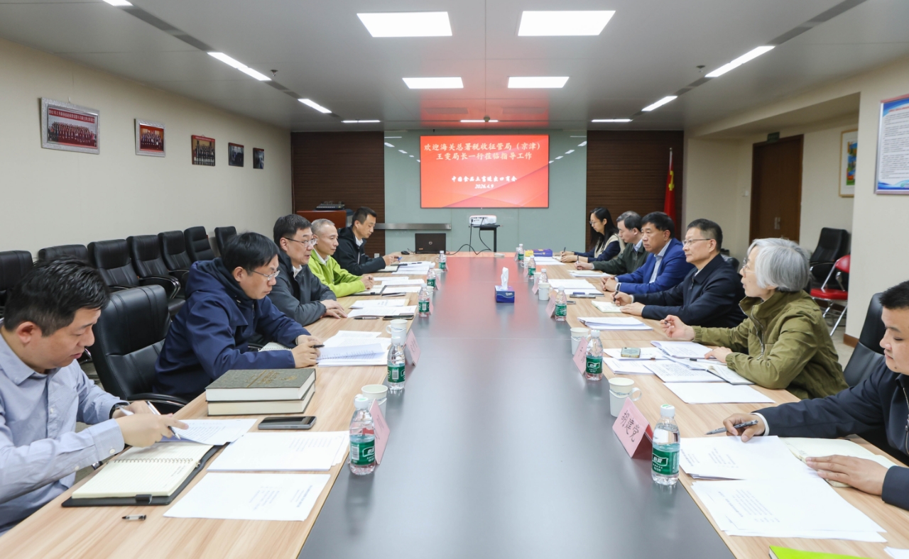 2026年4月9日下午,海关总署税收征管局(京津)王雯局长、崔杰副局长一行来我会座谈调研。曹德荣会长、于露副会长、商会副会长单位山东百佳食品有限公司刘继华董事长、商会副秘书长欧孟和有关商品分会负责同志参加座谈。双方就食品农产品进出口税收征管现状、政策落实、企业诉求、行业自律、通关便利化,以及协同推进相关工作等议题进行了深入交流。
