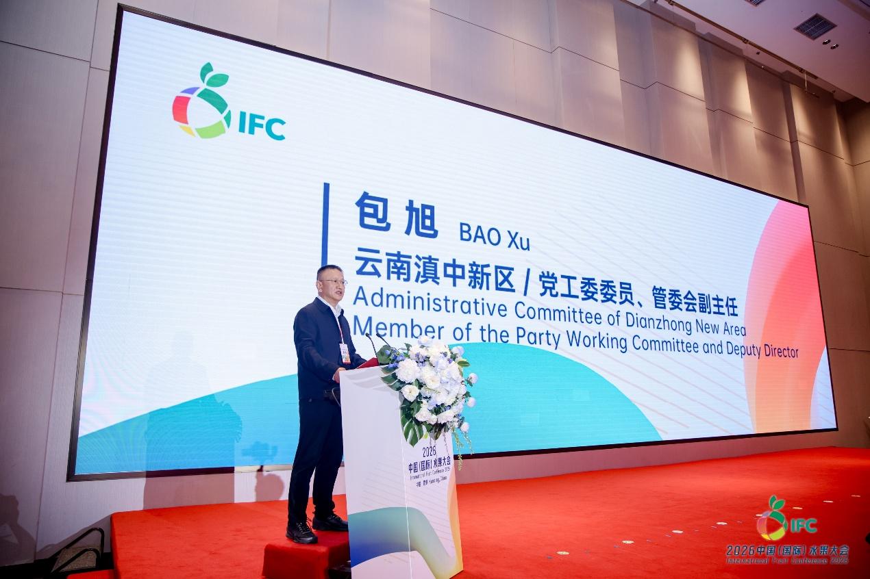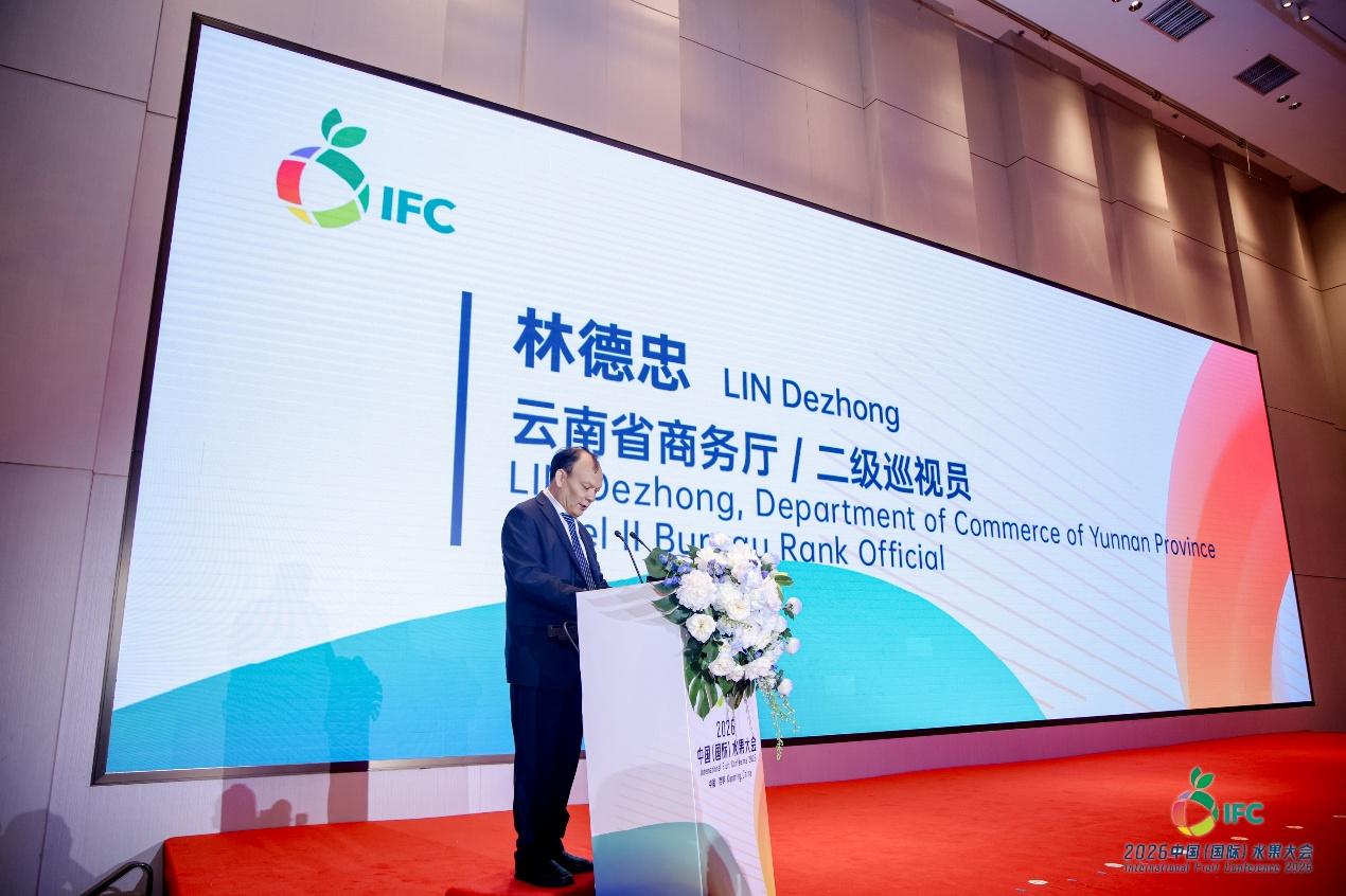 4月27日,“2026中国(国际)水果大会”在云南昆明举办。大会由中国食品土畜进出口商会主办,昆明海广兴水果市场协办,云南省商务厅和昆明市商务局给与本次活动大力支持。我会曹德荣会长,云南省商务厅林德忠二级巡视员,云南滇中新区党工委委员、管委会副主任包旭等出席大会开幕式并致辞。来自国内外300多位种植、加工、贸易企业以及大型水果批发市场、连锁卖场、生鲜电商、使领馆、行业协会和地方政府的代表参会。